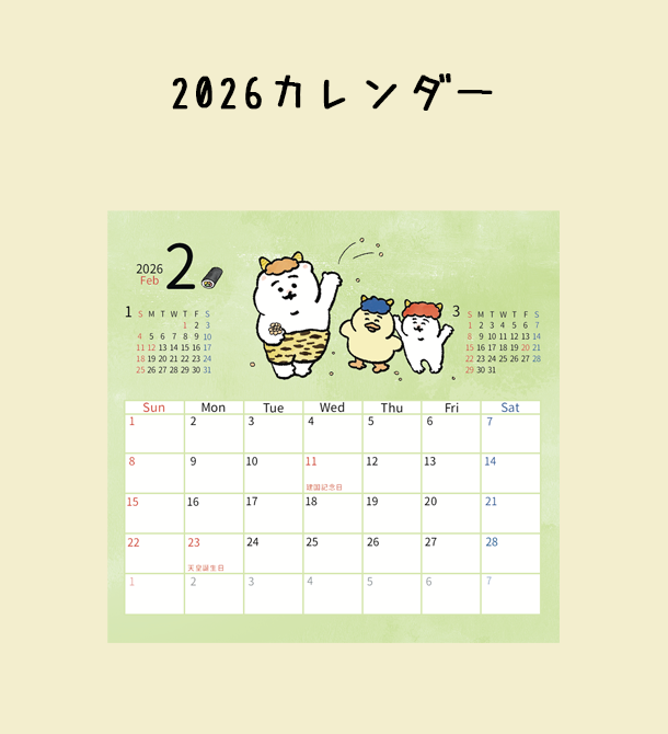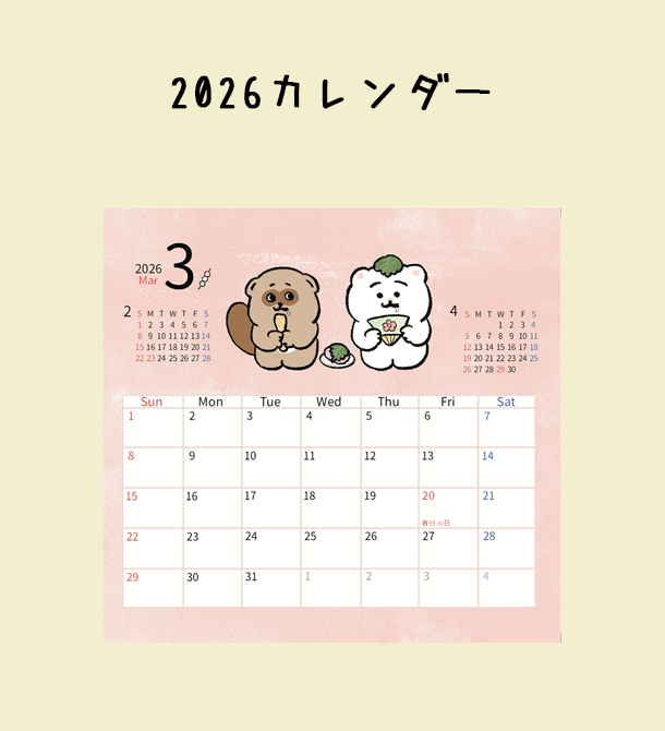 〈ひよこのねこ〉卓上型カレンダー 2026年
