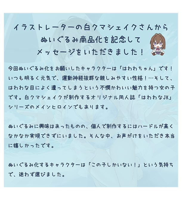 イラストレーターの白クマシェイクさんが手掛けるオリジナルキャラクター「はわわちゃん」のぬいぐるみ商品化が決定!