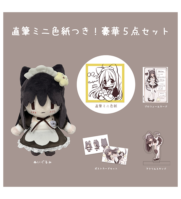 ぬいぐるみに、なんと!hitodeさんの直筆ミニ色紙が入った豪華5点セットです!