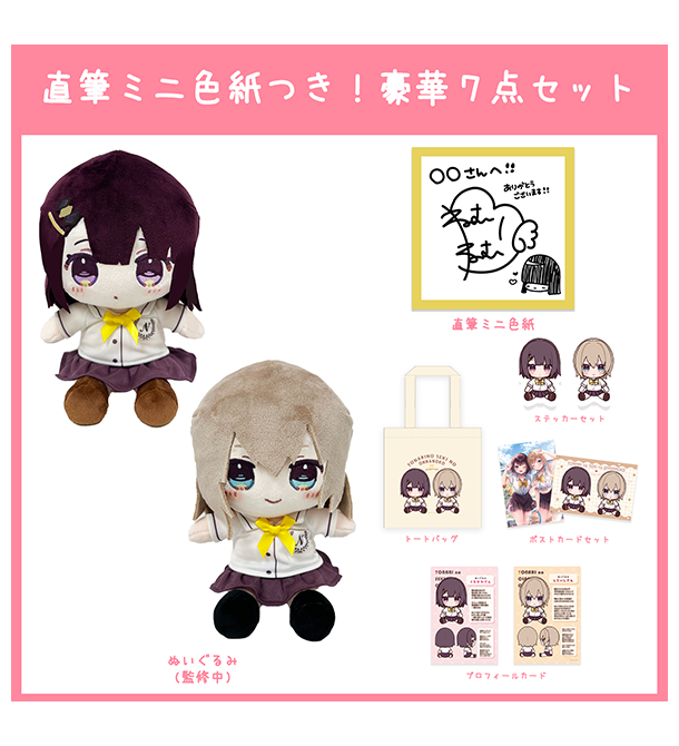 「黒川さん」と「白石さん」のぬいぐるみに、なんと!ねむりねむさんの直筆ミニ色紙が入った豪華7点セットです!