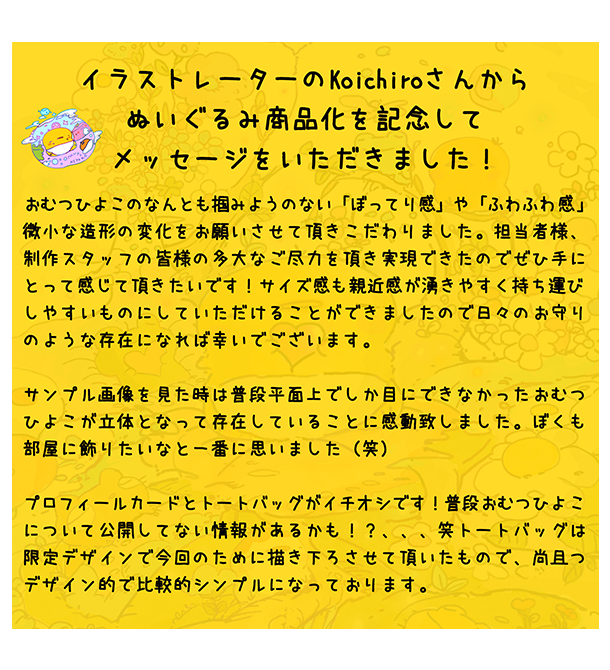 ぬいぐるみに、なんと!Koichiroさんの直筆ミニ原画と直筆ミニ色紙が入った豪華6点セットです!