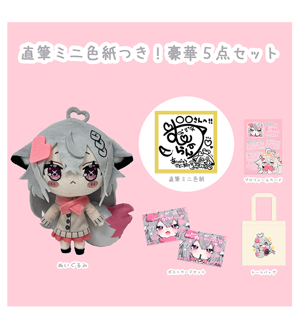 ぬいぐるみに、なんと!むーらんさんの直筆ミニ色紙が入った豪華5点セットです!