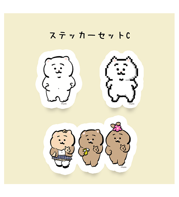 お腹をぷにぷにしているねこに癒されるステッカーや話題の平成ギャルをモチーフにしたステッカーなど、人気のステッカーが3枚入ったセットになっています♪
