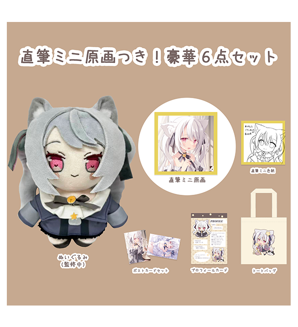 ぬいぐるみに、なんと!星の紅茶さんの直筆ミニ原画と直筆ミニ色紙が入った豪華6点セットです!