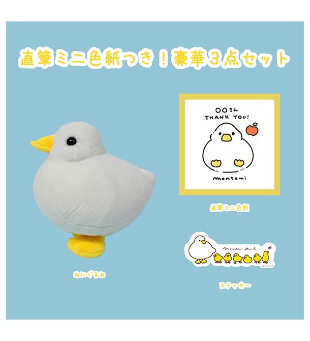 ぬいぐるみに、なんと!もんとみさんの直筆ミニ色紙が入った豪華3点セットです!