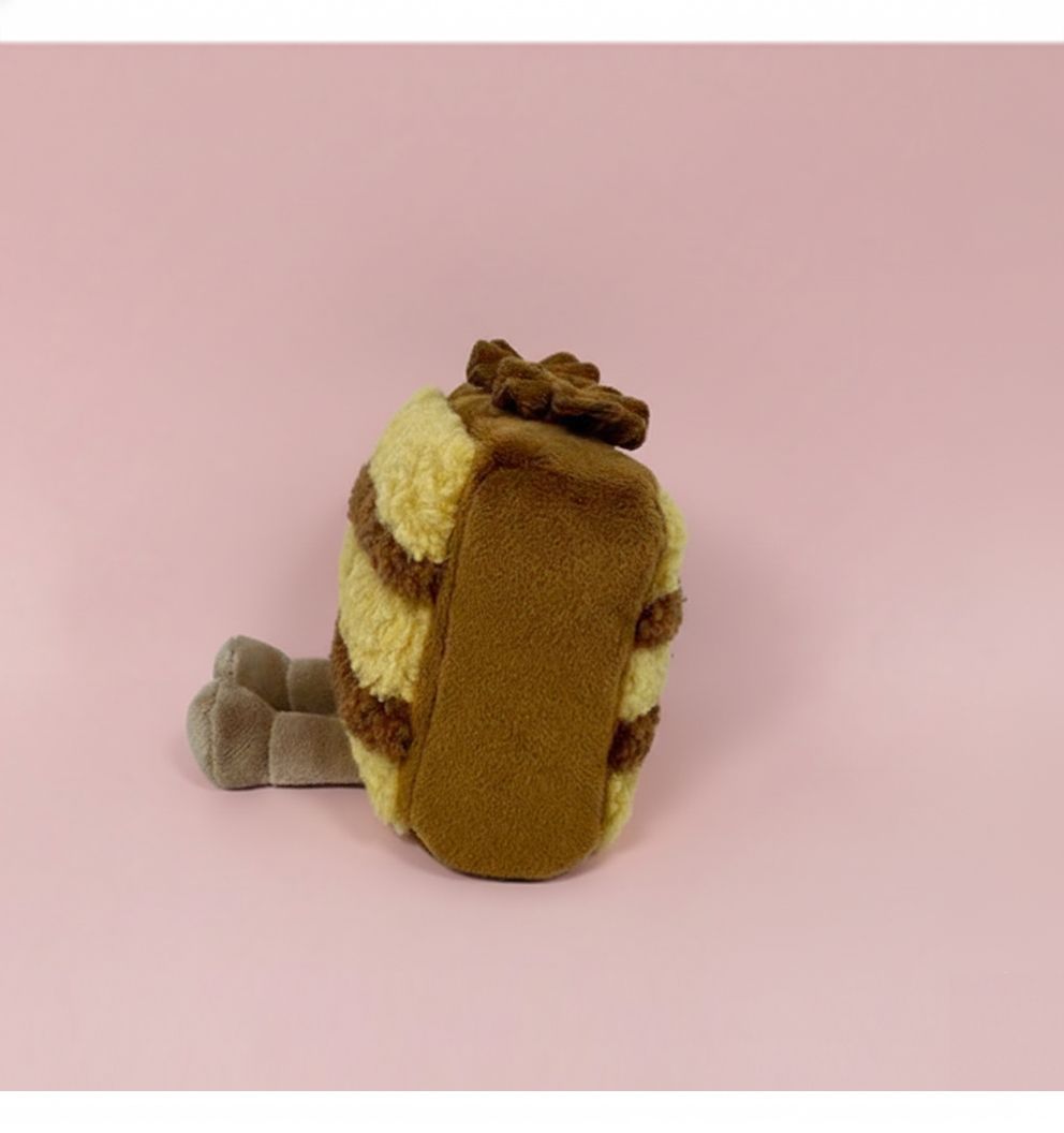 今回は、トップスの定番商品のチョコレートケーキが、顔と足のついたとっても可愛いぬいぐるみになりました。