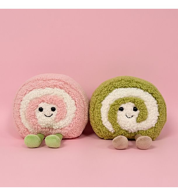 〈teeny friends〉オリジナルの、抹茶ロールケーキのぬいぐるみです。抹茶とクリームが渦巻く、まさに和を感じるぬいぐるみです。