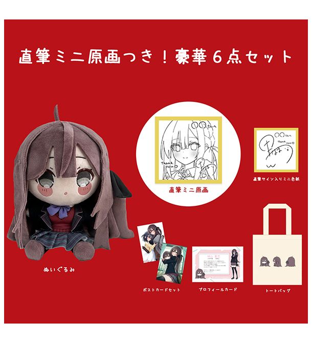 ぬいぐるみに、なんと!黒なまこさんの直筆ミニ原画と直筆サイン入りのミニ色紙が入った豪華6点セットです!