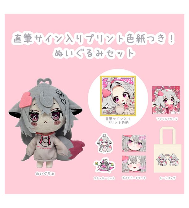 ぬいぐるみに、なんと!むーらんさんの直筆サイン入り色紙が入った豪華6点セットです。