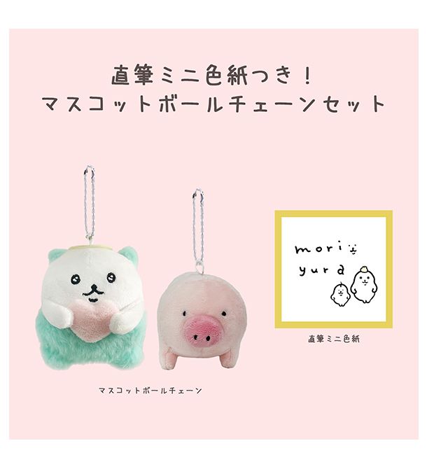 マスコットボールチェーン2体に、なんと!MORI yuraさんの直筆ミニ色紙が入った豪華3点セットです。